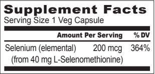 As a dietary supplement, take one Vcap daily, preferably with meals. Caution: Persons living in areas of high soil selenium, such as the Dakotas, should consult a physician prior to use.